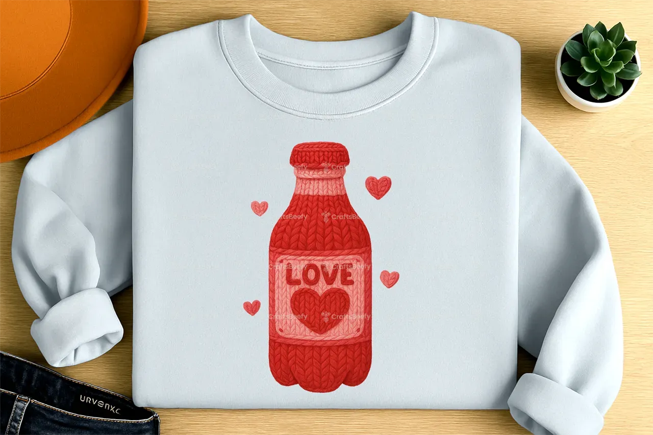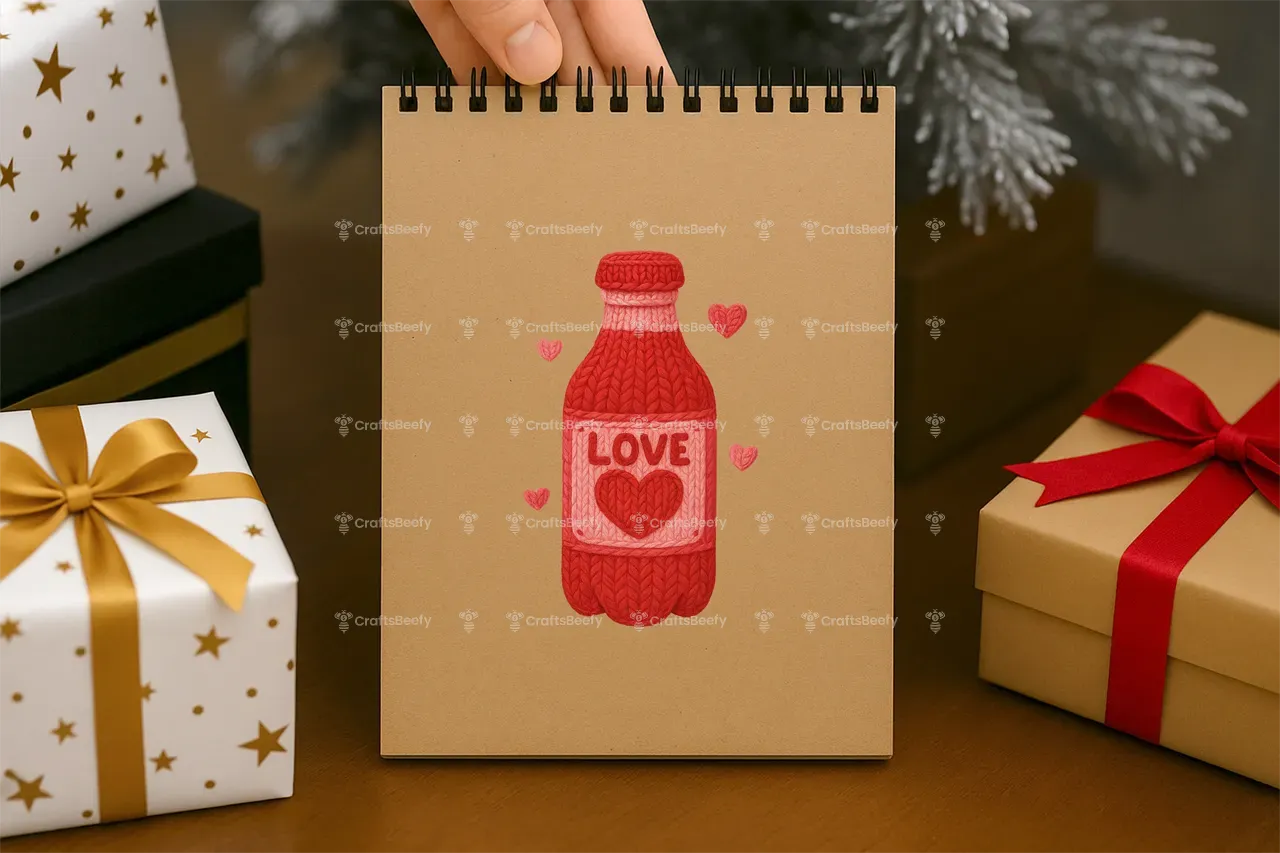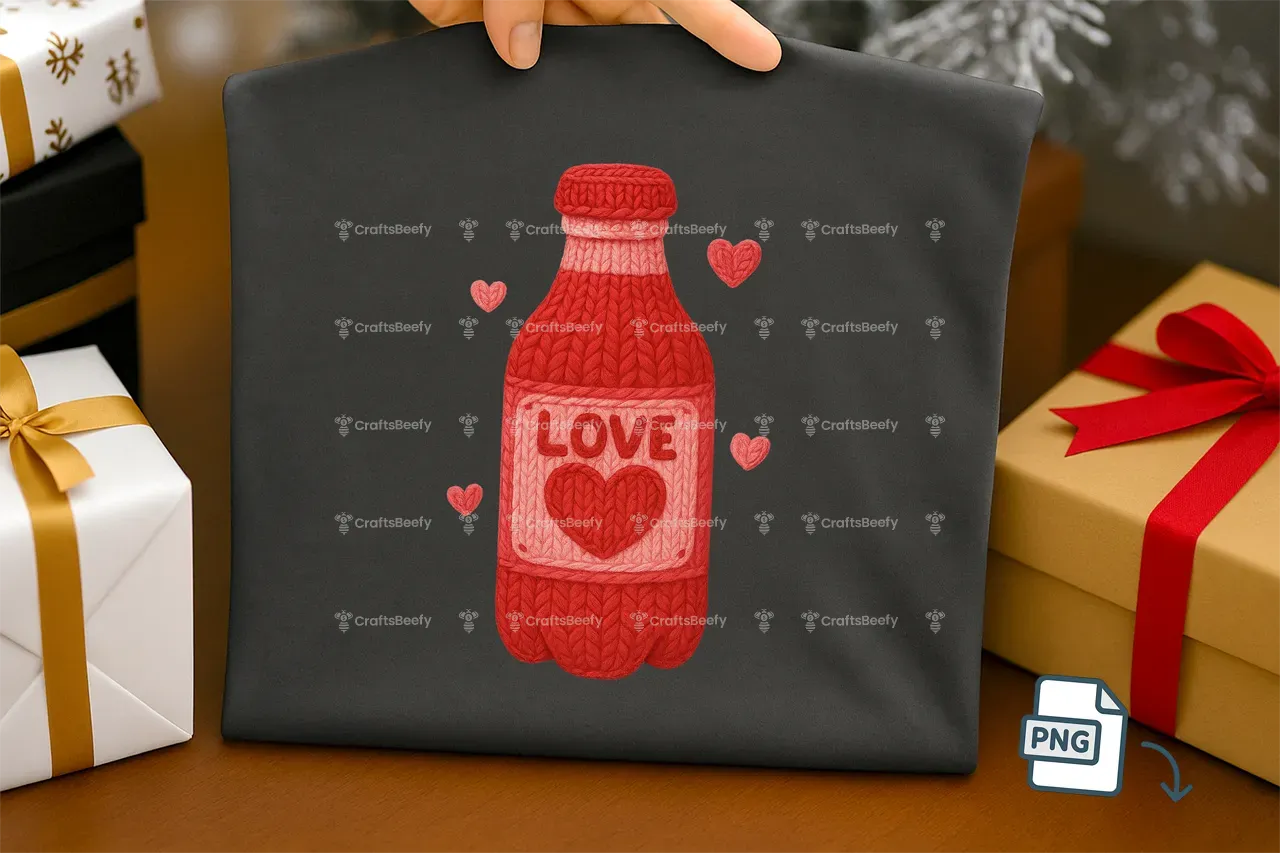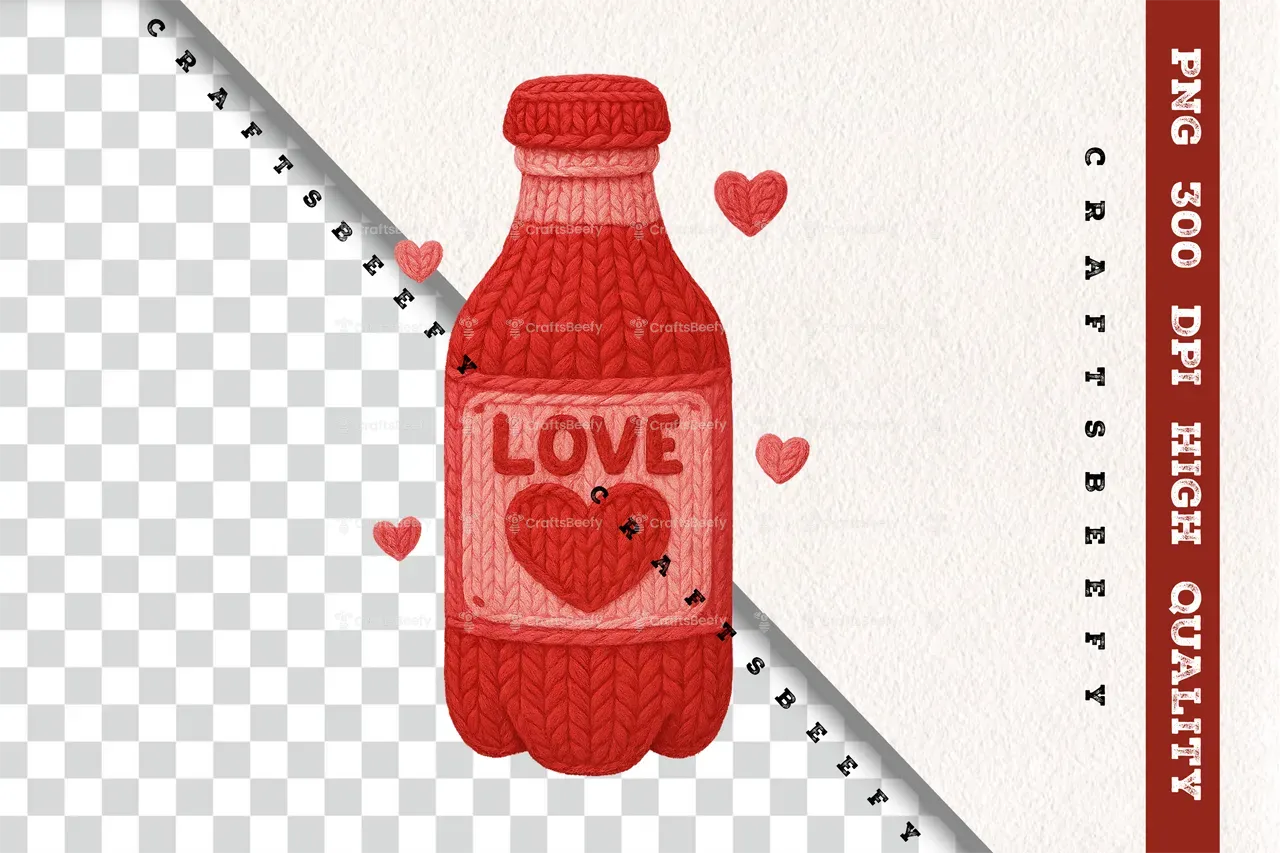 Faux Crochet Love Bottle PNG Valentine Love Potion Art