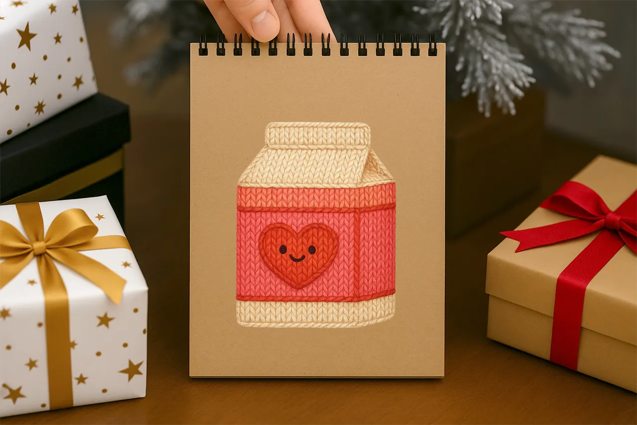 – Faux Crochet Milk Carton PNG Cute Valentine Kawaii Drink